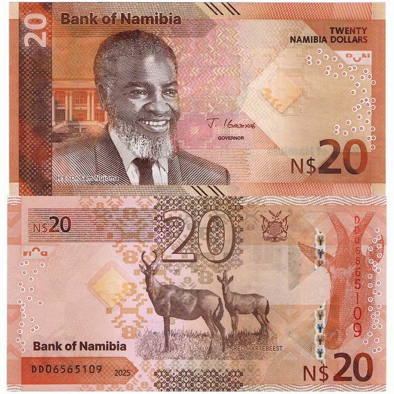 20 доллар Намибия кәгазь акчасы. 2025 ел